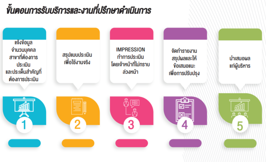 ได้รับความไว้วางใจจากองค์กรระดับประเทศ ในการประเมินบริการทั้งในระดับสาขาเดี่ยวและภาพรวมองค์กร
