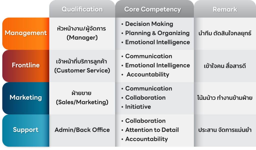 - เพื่อวางแผนพัฒนาพนักงานให้เหมาะกับบทบาทในองค์กร